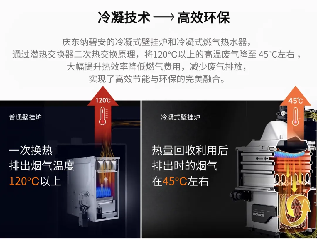 1988年,亞洲首款冷凝式燃?xì)獗趻鞝t問世,慶東納碧安率先將冷凝技術(shù)引入家用供暖領(lǐng)域。冷凝技術(shù)的核心價(jià)值,在于對燃燒過程中產(chǎn)生的廢熱進(jìn)行二次回收,極大提高了能源利用率,降低了碳排放,真正實(shí)現(xiàn)了“節(jié)能+環(huán)保”雙輪驅(qū)動。