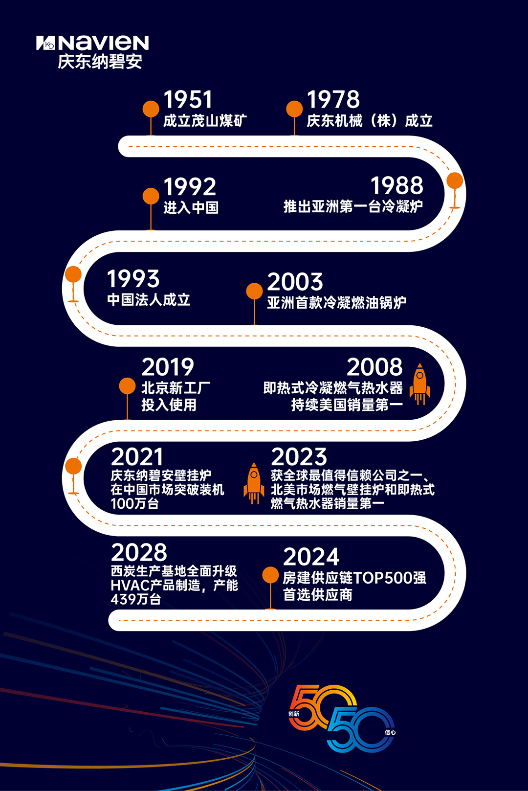 如今的慶東納碧安,不再只是一家熱能設(shè)備制造商,而是擁有完整研發(fā)、制造、供應(yīng)與服務(wù)體系的綜合型能源企業(yè)。面向下一個(gè)50年,慶東納碧安提出了“VISION50-50”戰(zhàn)略構(gòu)想——既是對前50年高質(zhì)量成長的總結(jié),也是對后50年綠色、低碳、智能發(fā)展的展望。