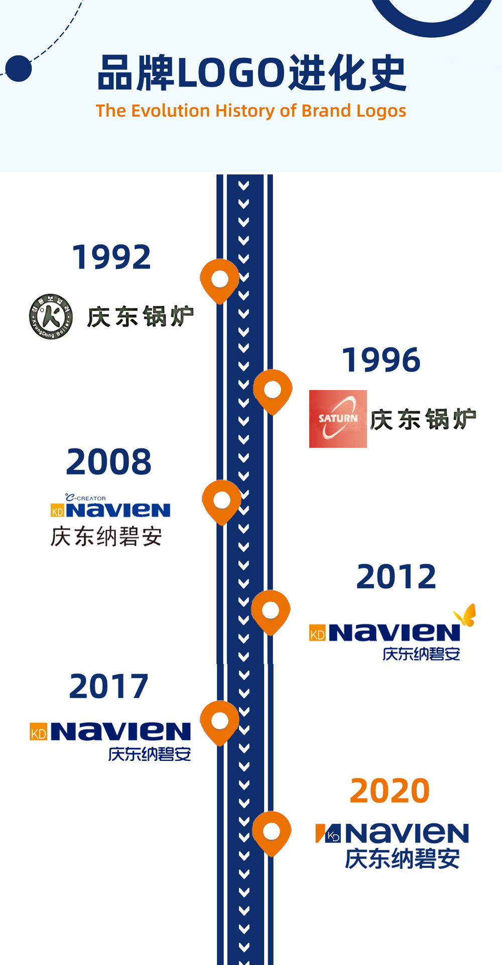 品牌印記|LOGO與產(chǎn)品的共成長在慶東納碧安33年的中國旅程中,每一次產(chǎn)品的升級迭代,每一次品牌視覺的煥新,都是與時(shí)代和用戶同頻共振的注腳。從最初以韓文“??”展示的品牌起點(diǎn),歷經(jīng)6次演變“KD Navien”為代表的國際化識別系統(tǒng),慶東納碧安始終以專業(yè)、可信的形象,伴隨用戶進(jìn)入每一個(gè)溫暖時(shí)刻。